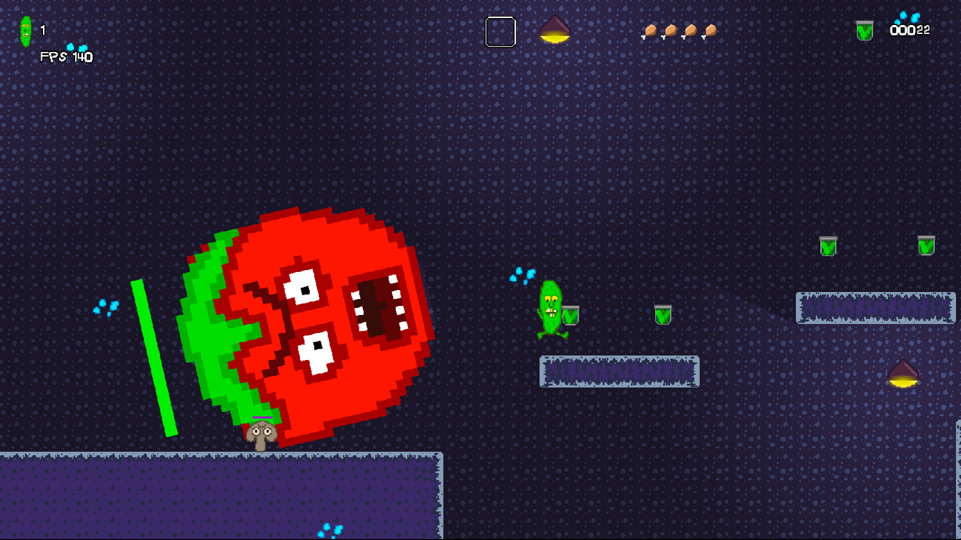 Hot Pickle is a 2D platform jumping game with tight controls and speedy movement. Shotgun across sauce caverns, vault over fryer pits and win the battle for brine.